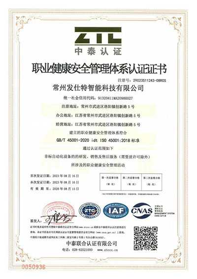 職業(yè)健康安全管理體系認證證書